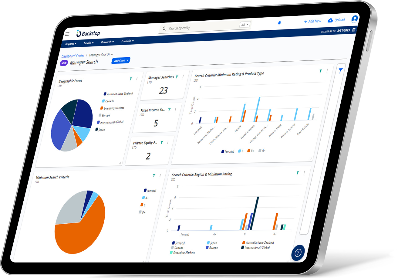 Backstop is your trusted ally in optimizing the investment and client life cycle. Our solutions create a single source of truth for multi-asset research and portfolio management, driving prospect and client satisfaction, fostering loyalty and ensuring long-term retention. Stay ahead of the competition with Backstop’s cutting-edge solutions.