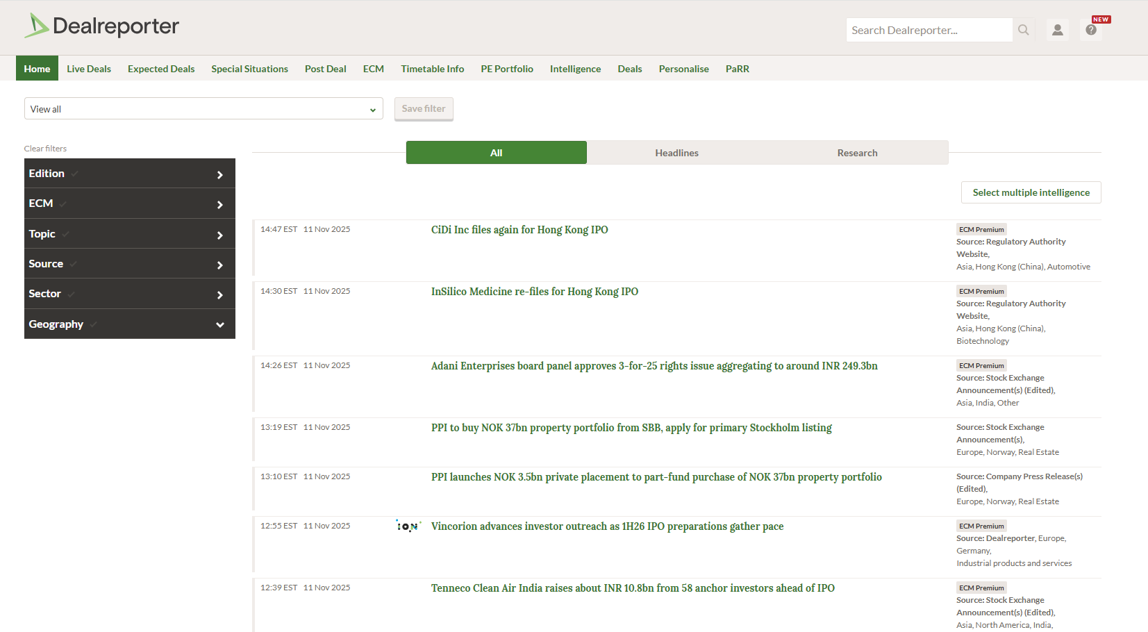 Hedge funds rely on Dealreporter’s intelligence to navigate equity special situations with confidence. We cover the full spectrum of ECM events—from IPOs and follow-ons to blocks, convertibles, and equity-linked bonds—helping investors assess pricing, timing, regulatory considerations, and market sentiment.